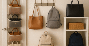 Soluções práticas para organizar bolsas e mochilas em pouco espaço