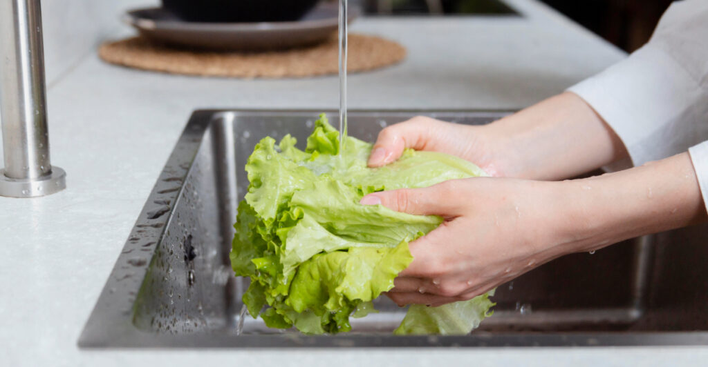 • Lave a alface em água corrente, retirando terra e resíduos maiores.