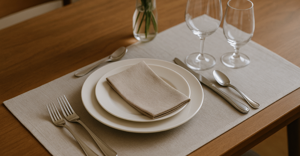 A primeira regra de ouro das mesas elegantes é que os talheres seguem a ordem em que serão usados, de fora para dentro. Parece óbvio, mas esse é o ponto de partida para acertar sempre.