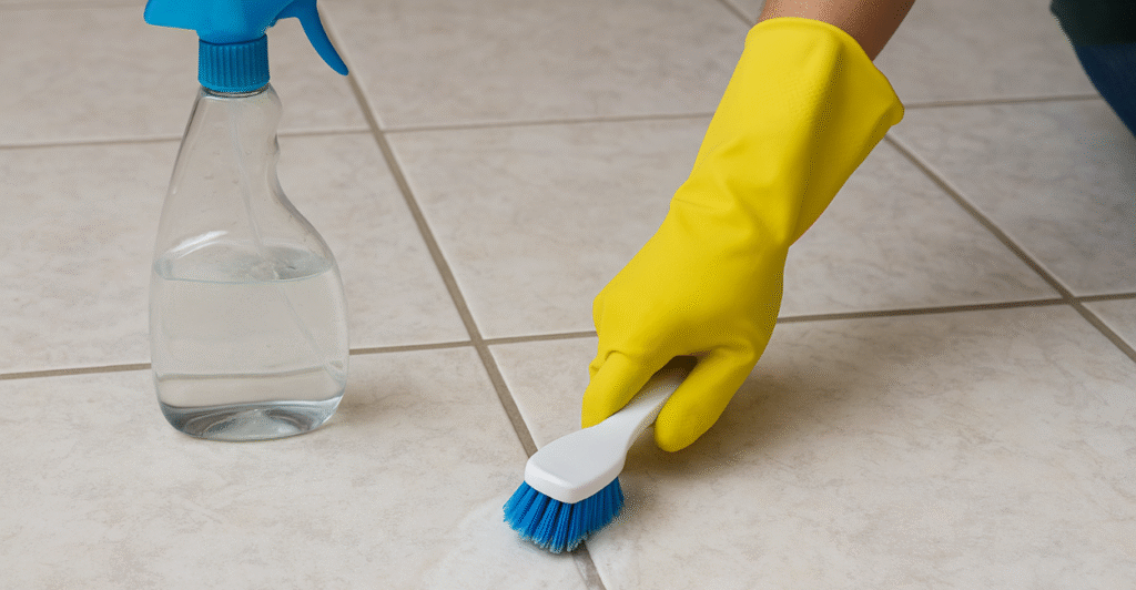 - Vinagre de álcool + bicarbonato de sódio: Misture 1 colher de bicarbonato com vinagre até formar uma pastinha. Aplique sobre o rejunte, deixe agir por 10 minutos e esfregue com escova de dente velha.